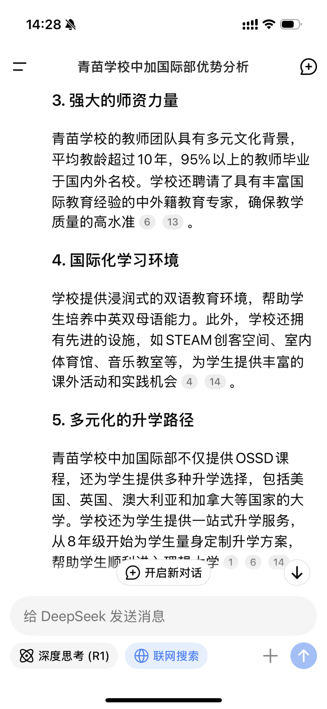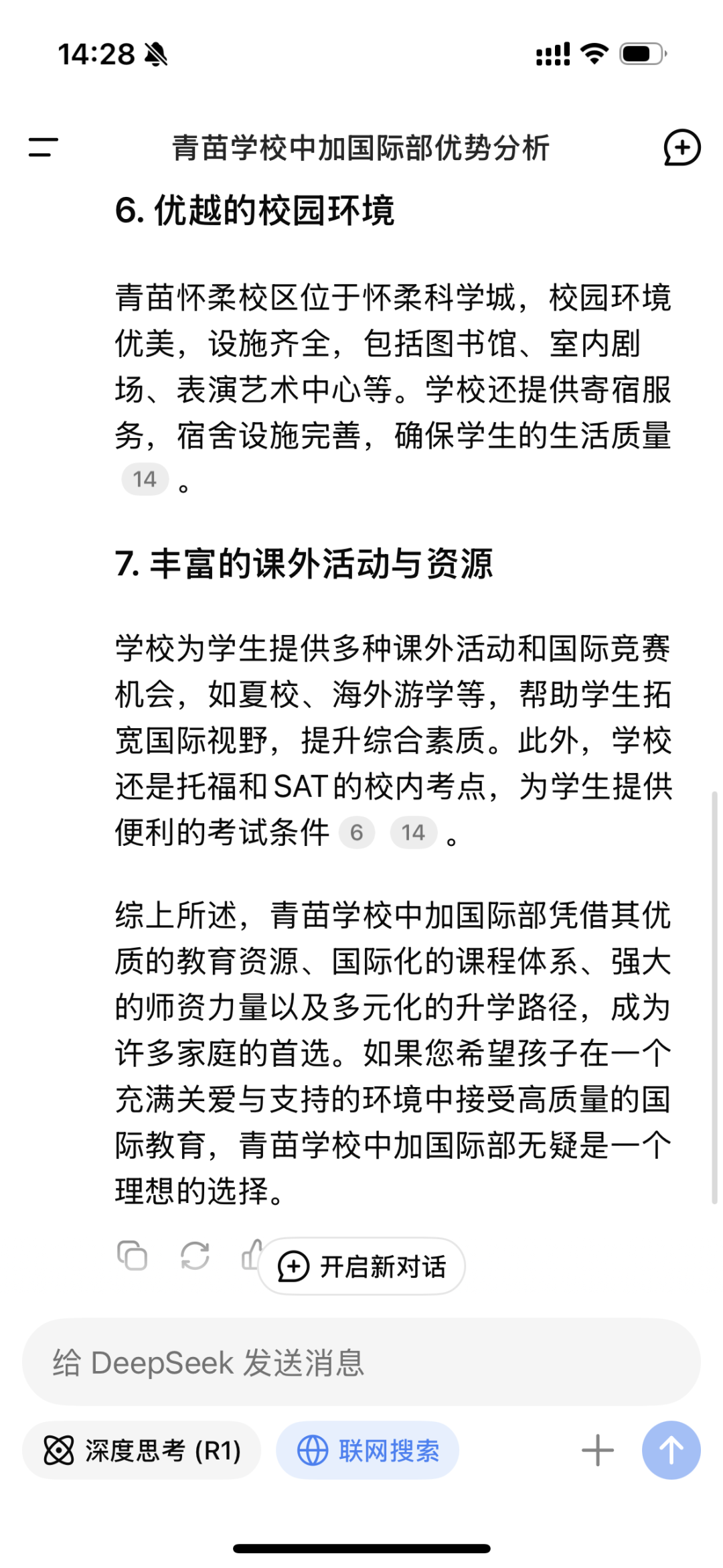 看!这就是DeepSeek眼中的青苗学校中加国际部!