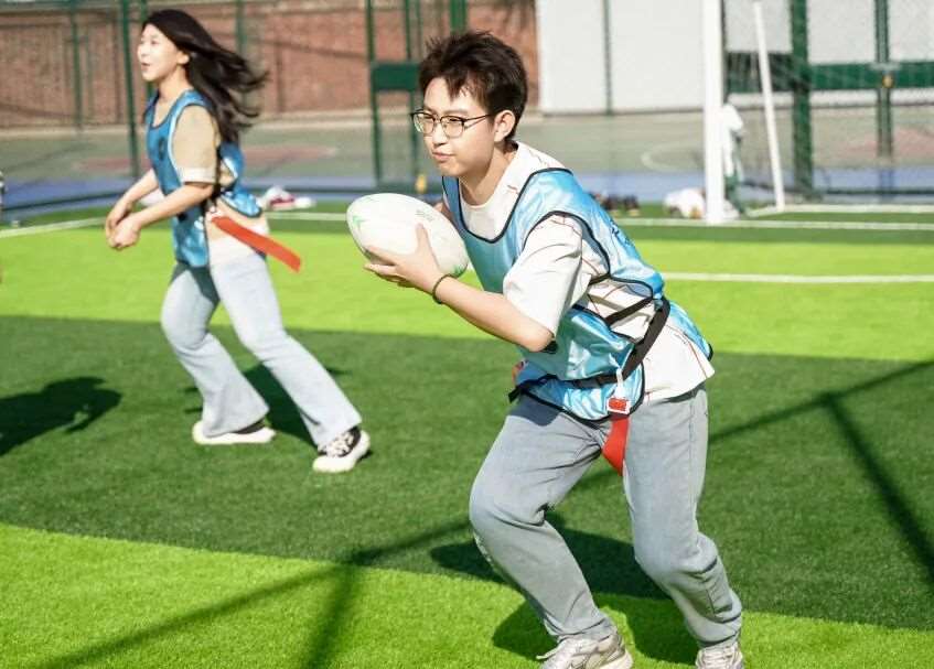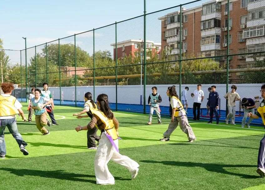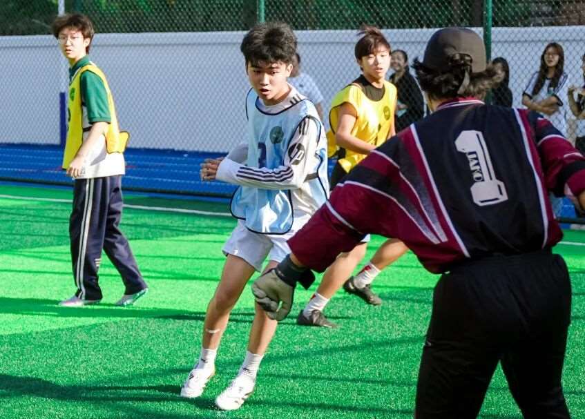 丰富多样的运动项目,从热身到全情投入,从趣味接力到专业球赛,教练场外指导,学生场内奋勇向前。
