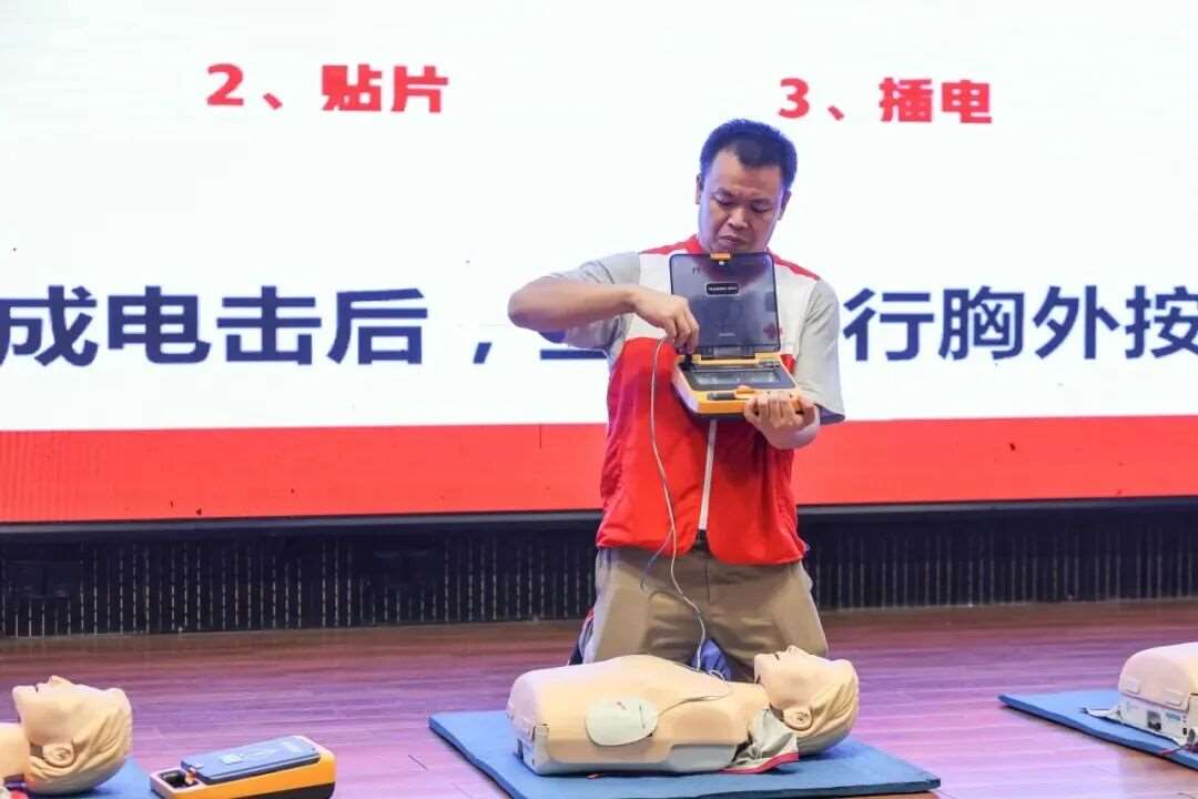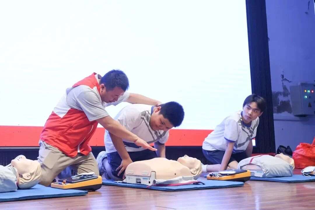 “手臂要伸直,利用身体力量按压”“开机、贴电极、听指令”——一声声清晰的操作指引,一次次用心的模拟互动,同学们逐渐从“不会救”到“敢于救”、从“怕出错”到“懂得怎么救”。现场许多学生表示,通过这次培训,他们不仅学会了基本的急救方法,更重要的是建立了在突发事件中保持冷静、科学施救的信心。