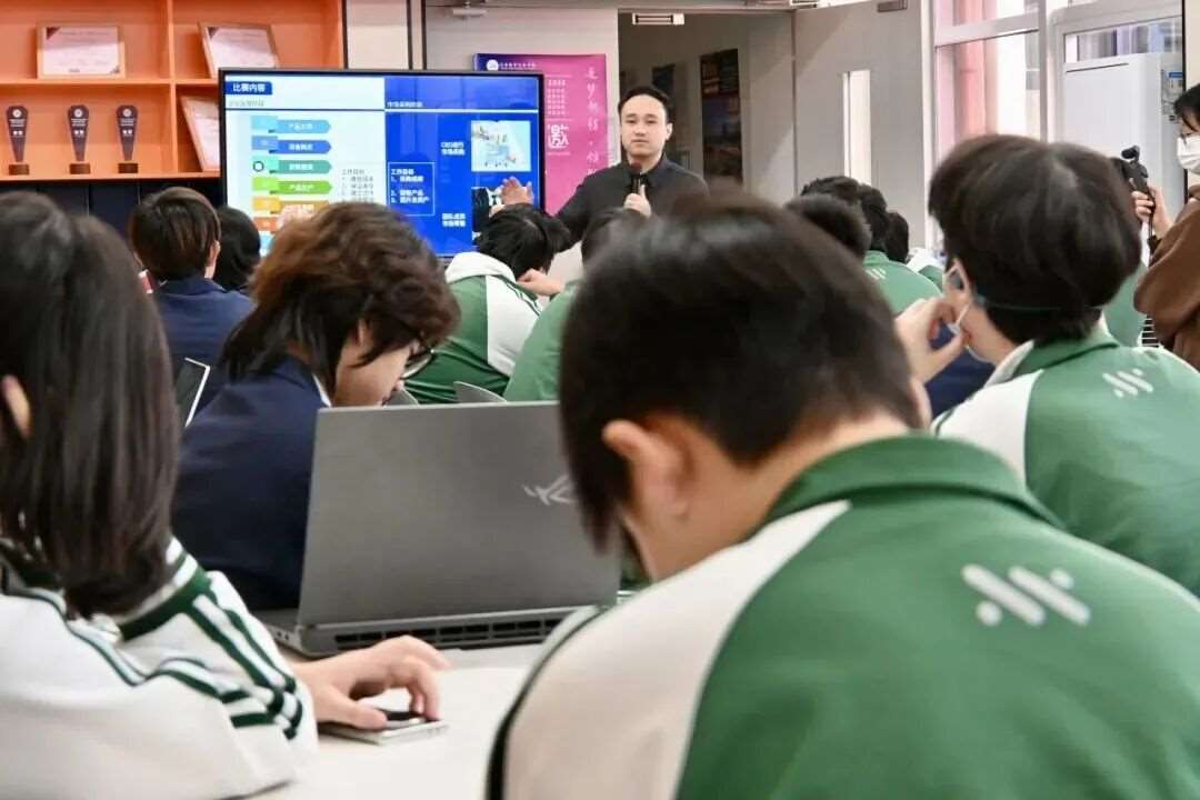 比赛中,每位学生化身“公司高管”,依托智能系统完成公司注册,并分别担任CEO、COO、CPO、CSO等核心职务,在协作中规划企业蓝图,体验真实商业角色。