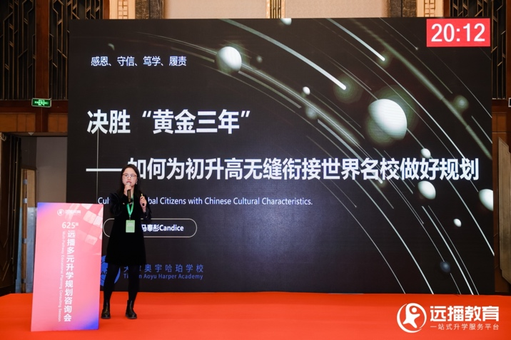 12月6日,应「远播国际教育集团」邀请,天津奥宇哈珀学校校长马奉彤女士参加该集团主办的教育展会,为广大家长带来主题为「决胜“黄金三年”——如何为初升高无缝衔接世界学校做好规划」的精彩讲座。