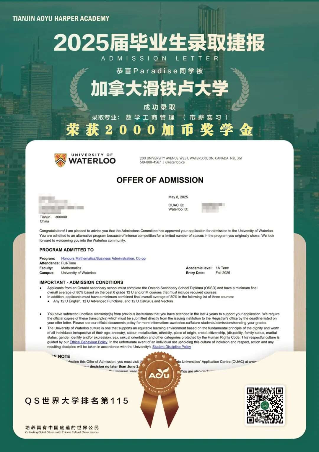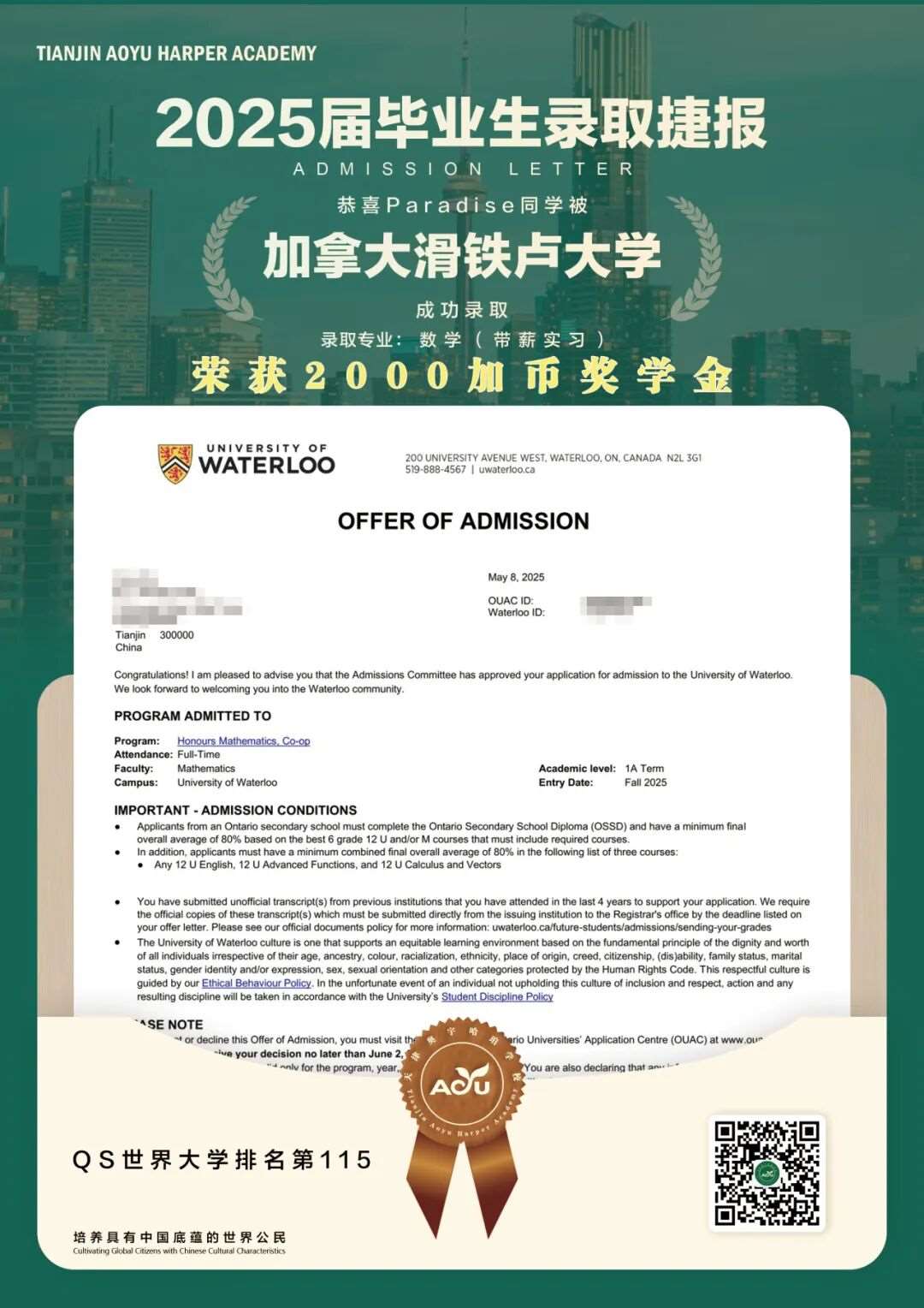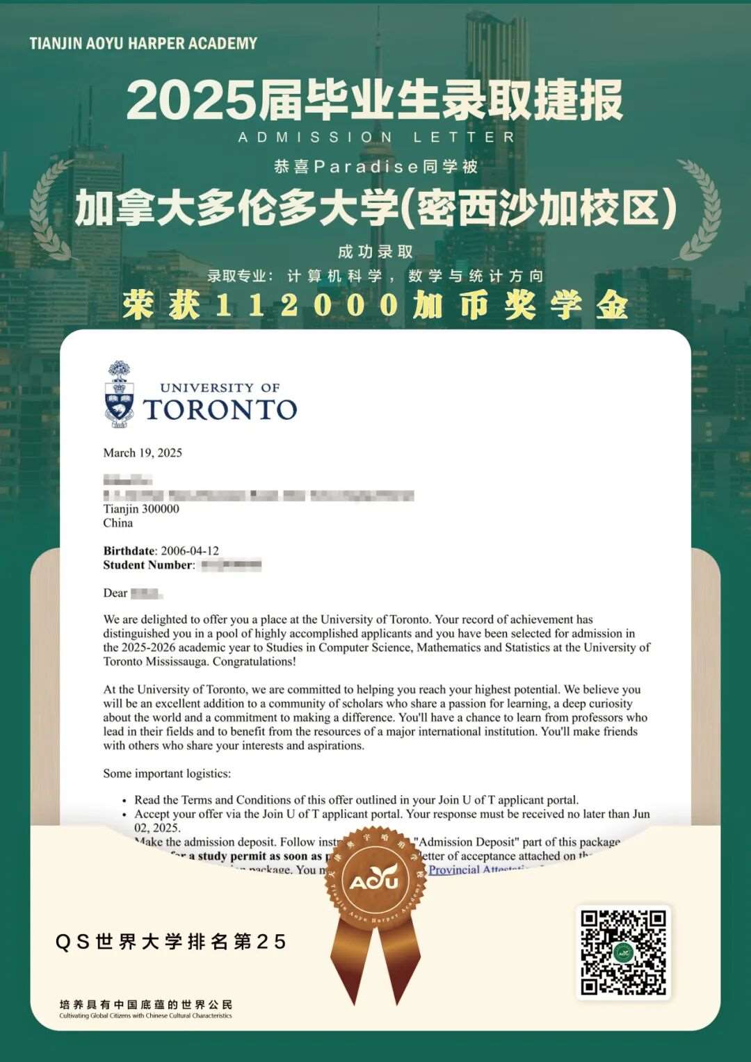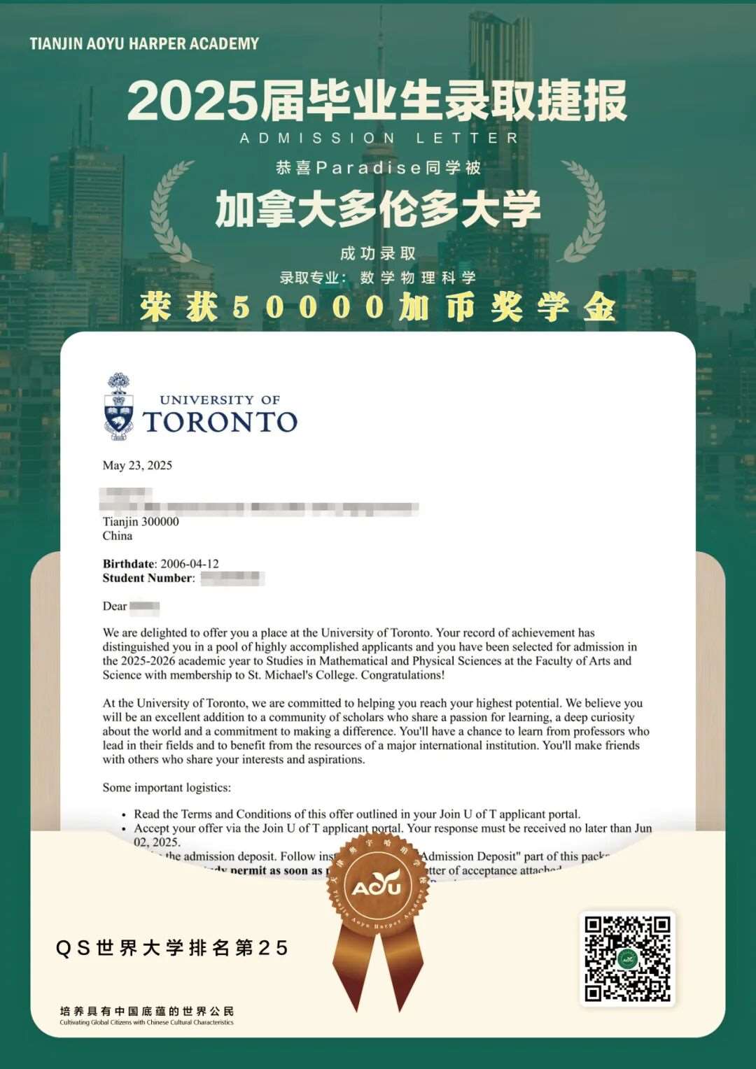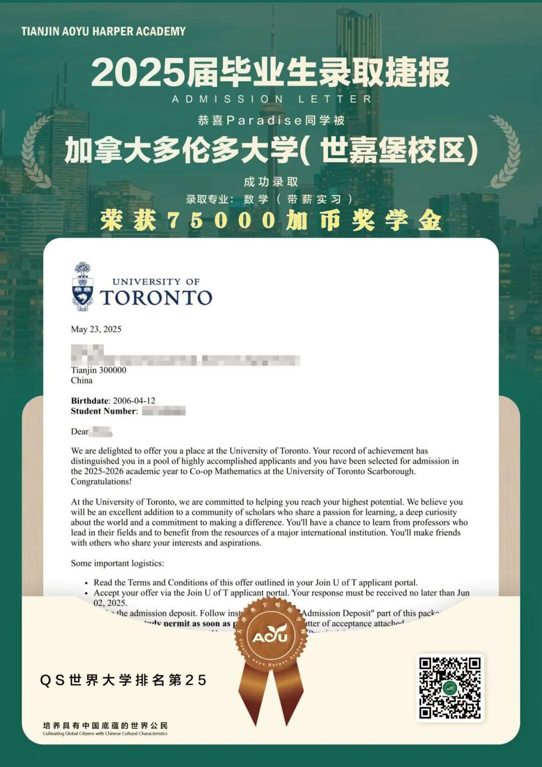 25届毕业生、多伦多大学、数学专业