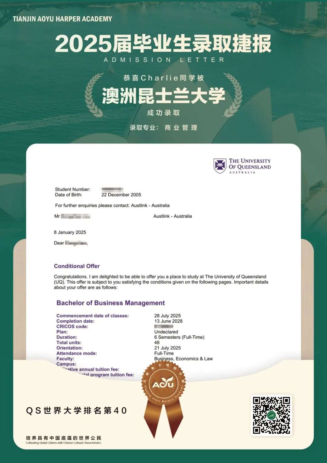 25届毕业生、昆士兰大学、商业管理