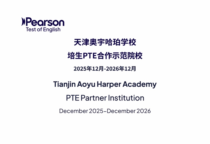 天津奥宇哈珀学校与培生PTE正式建立合作关系,成为培生PTE合作示范院校。