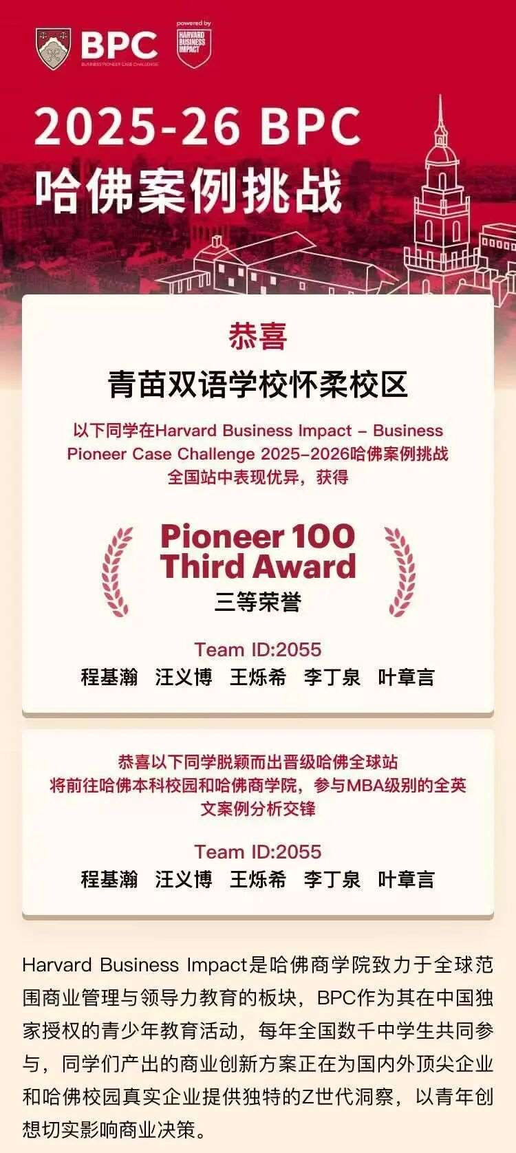 捷报!我校学子斩获BPC哈佛商赛全国前30%,成功晋级哈佛全球赛!