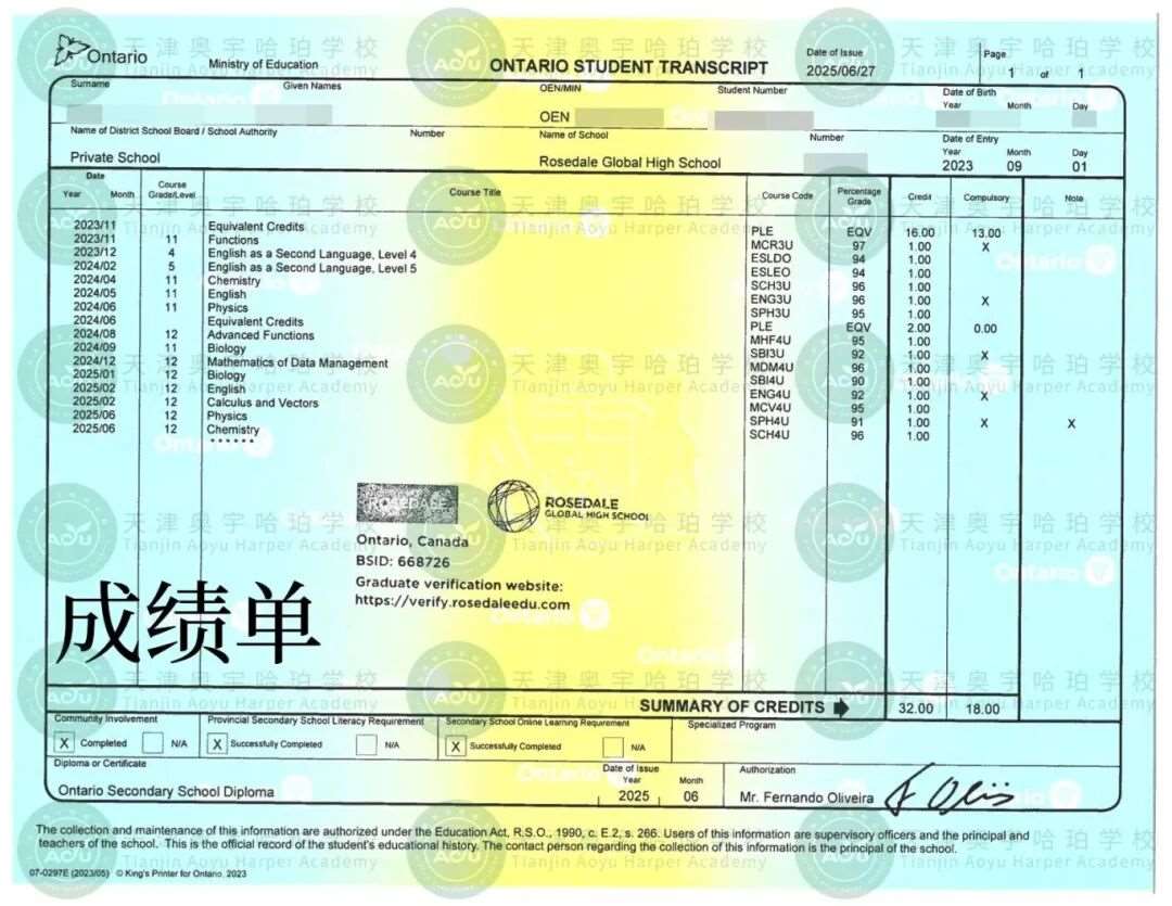 普高、AP、A-Level、IB等*单均可转换为加拿大安大略省高中的学分,直接被加拿大安大略省教育厅认可。学生顺利入读奥宇哈珀OSSD课程后,不仅可以节省在加拿大当地高中留学的费用,还可以收获全球认可的加拿大高中毕业证书及海外大学录取通知书。