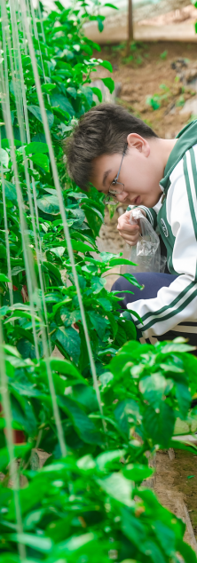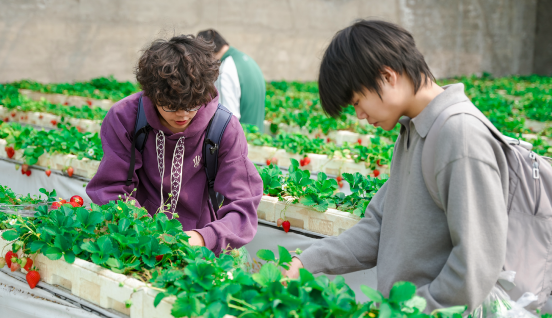 在专业农业讲师的带领下,学生们走进绿色蔬菜种植园区,近距离观察前沿种植技术:在立体栽培草莓大棚,讲师详解了基质栽培、水肥一体化系统的工作原理,学生们亲手采摘成熟果实,直观感受科技对产量与品质的提升;无土栽培西瓜区里,悬垂生长的藤蔓与饱满果实打破传统认知,大家通过观察营养液循环系统,理解精准农业的核心逻辑;在三色彩椒种植区,师生共同探讨蔬菜育种、病虫害绿色防控等知识,完成指定采摘任务的同时,掌握了农产品从种植到收获的全流程。