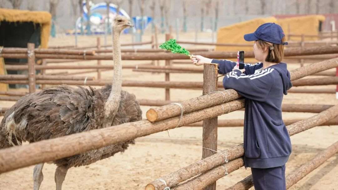 午餐过后,师生们前往萌宠乐园。在萌宠乐园,畜牧专业讲师介绍了鸵鸟等特色养殖品种的生活习性与生态价值,学生们有序参与饲喂互动,近距离观察生物多样性。