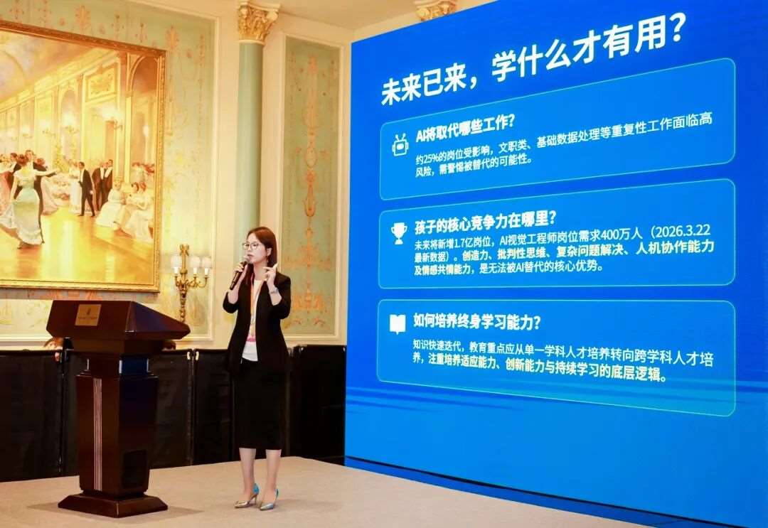 天津奥宇哈珀学校校长马奉彤受邀出席,带来《AI时代的国际教育:趋势、挑战与选择》主题讲座,用专业视角为迷茫中的家长拨开迷雾、指引方向。